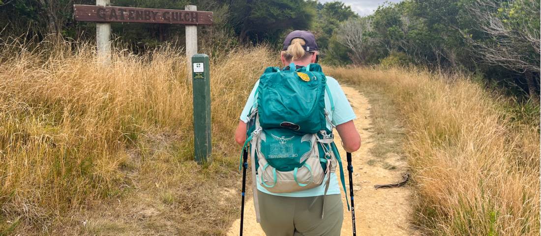 You'll want to take a decent-fitting day pack on your walk each day. I always take a water bladder system so you can keep hydrated on the longer-distance days. Be mindful that there's no where to fill up your water on the track so you'll want to carry about 3 litres of water a day.