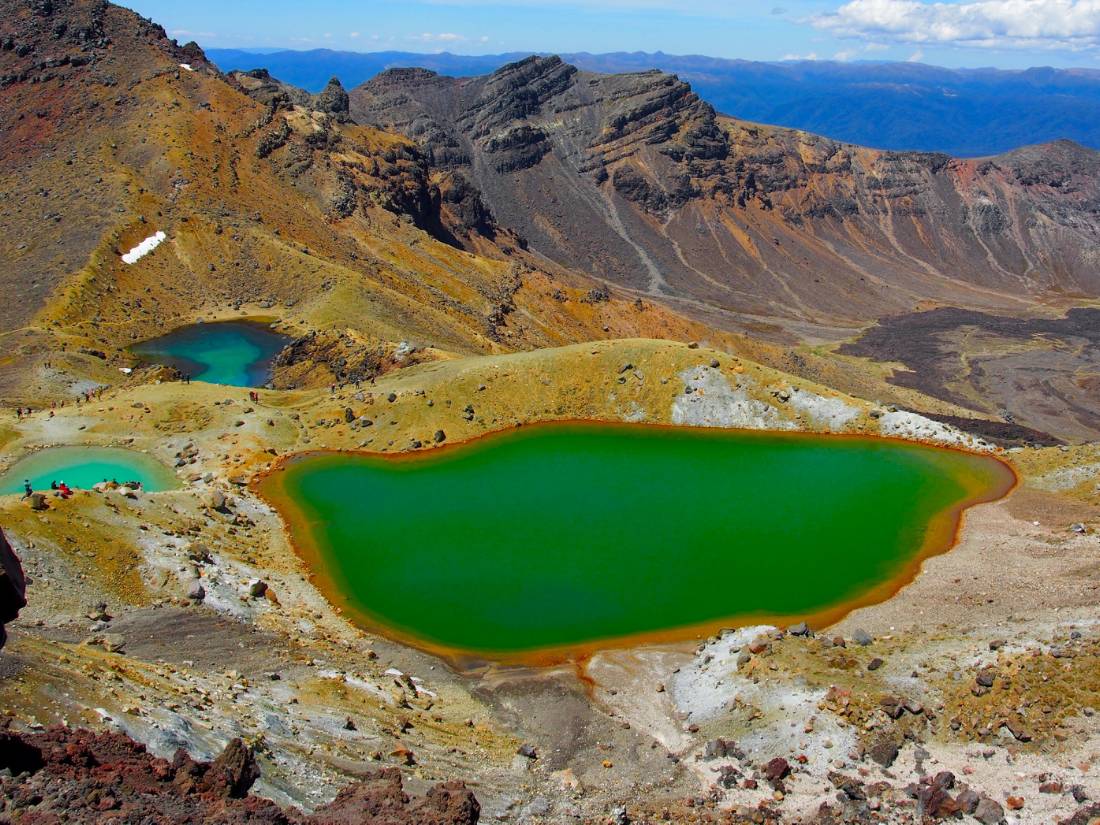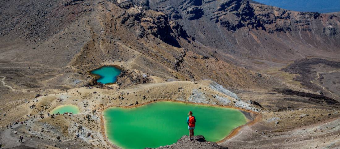After climbing nearly 800m in altitude to the top of Red Crater, you'll be welcomed with out-of-this-world views of the valley below and a first glimpse of Blue and Emerald Lakes. Each lake is uniquely magnificent in colour due to the volcanic minerals dissolved in the water.